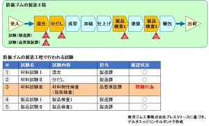 防振ゴム製造工程と試験状況
